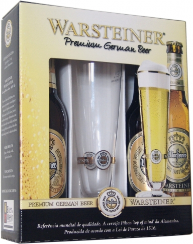 Conteúdo deste Kit: 1 garrafa de cerveja Warsteiner Premium Verum Clara 330 ml, 1 garrafa de cerveja Warsteiner Dunkel  de 330 ml e 1 Tulipa Warsteiner de 200 ml.